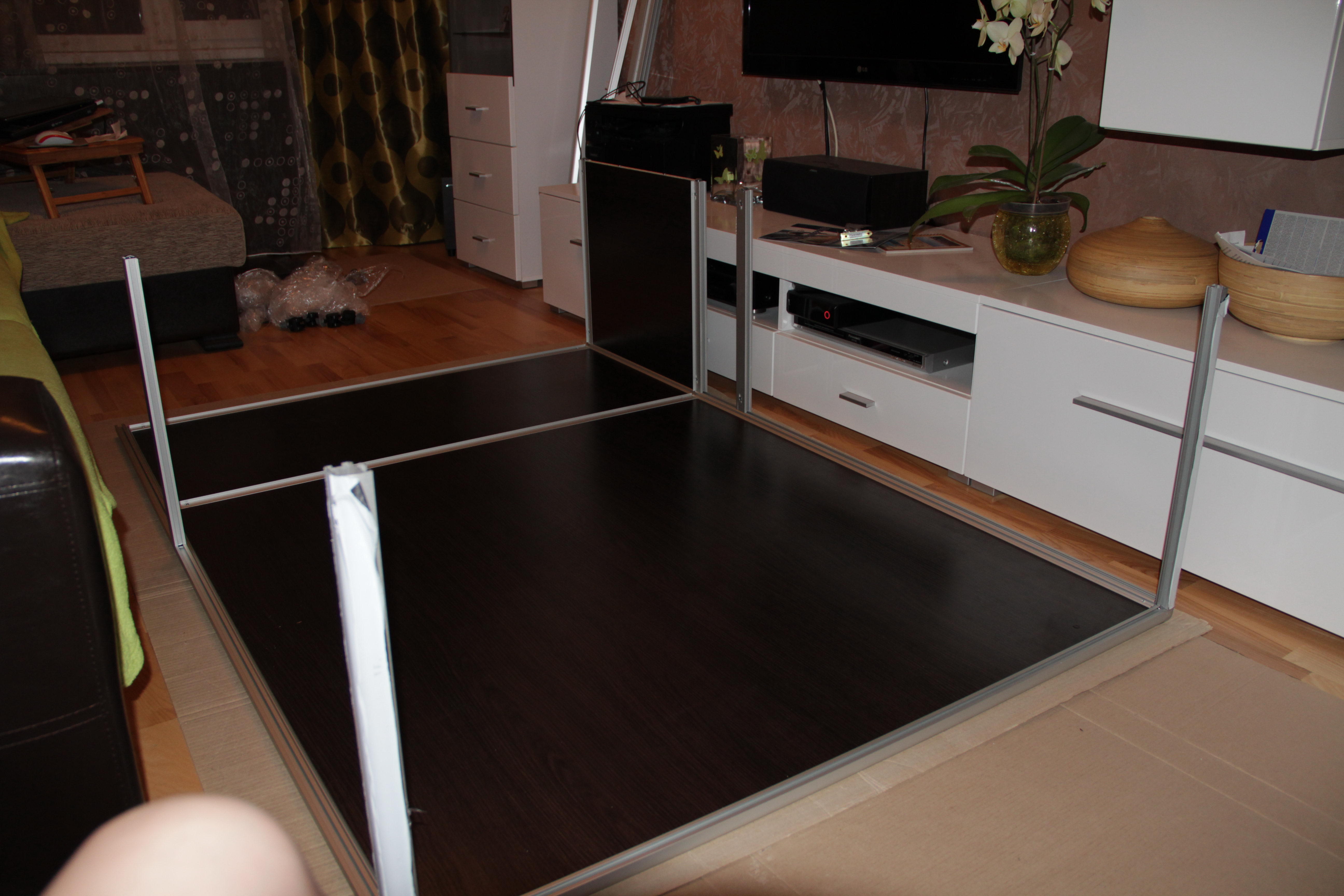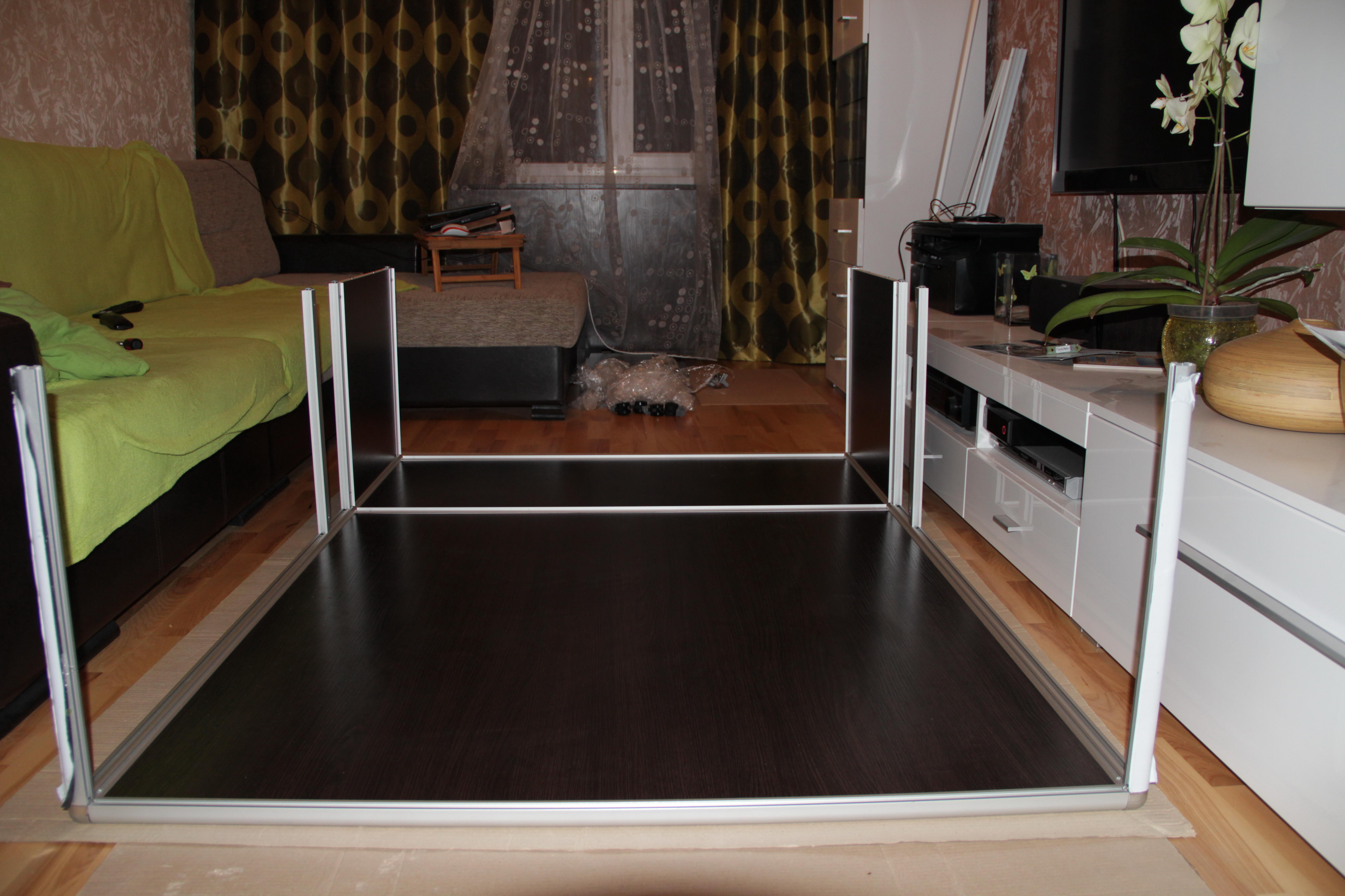 Так как до этого опыта работы с профилем Еврошоп не было (да и опыт работы с алюминиевым профилем для шкафов-купе ограничивался 3-мя собранными дверьми) каждый шаг приходилось выверять понимая, если «завалим» хоть одну деталь – ехать в Гродно за заменой очень накладно и долго.