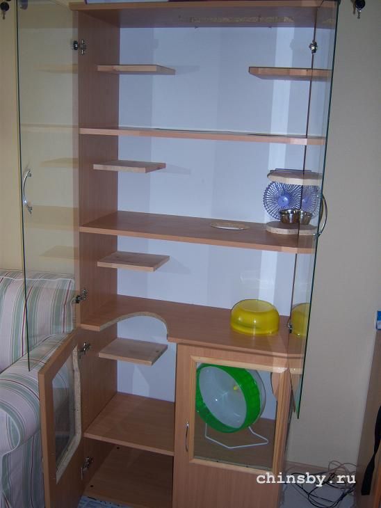 4 этажа, между всеми этажами проходы, между третьим и вторым проход можно закрывать если шиншилл надо сажать отдельно. Полки все новые. Стекла запираются на ключ.